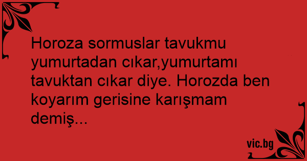 Horoza sormuslar tavukmu yumurtadan cıkar,yumurtamı tavuktan cıkar diye. Horozda ben koyarım gerisine karışmam demiş...