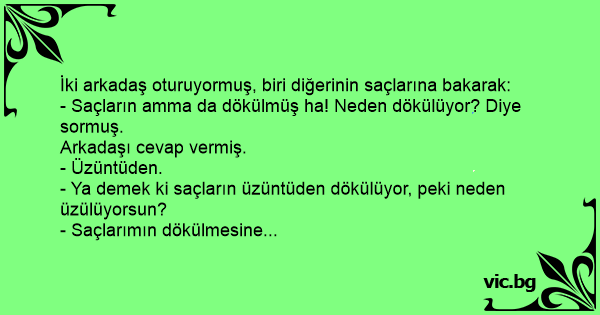 İki arkadaş oturuyormuş, biri diğerinin saçlarına bakarak: