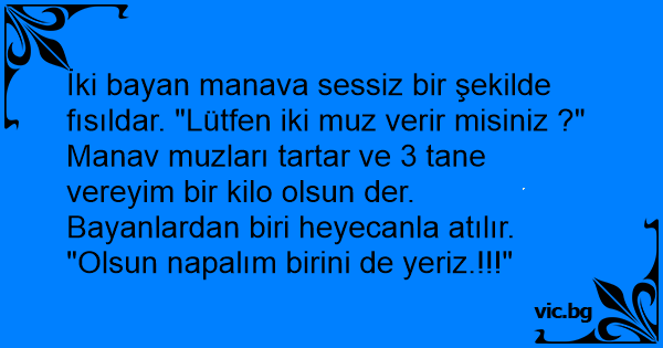 İki bayan manava sessiz bir şekilde fısıldar. "Lütfen iki muz verir misiniz ?"