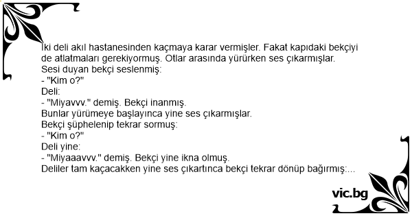 Deliler tam kaçacakken yine ses çıkartınca bekçi tekrar dönüp bağırmış: