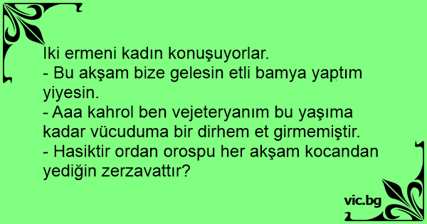 - Aaa kahrol ben vejeteryanım bu yaşıma kadar vücuduma bir dirhem et girmemiştir.