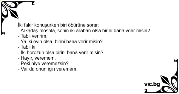 İki fakir konuşurken biri öbürüne sorar: