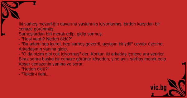İki sarhoş mezarlığın duvarına yaslanmış içiyorlarmış, birden karşıdan bir cenaze görünmüş.