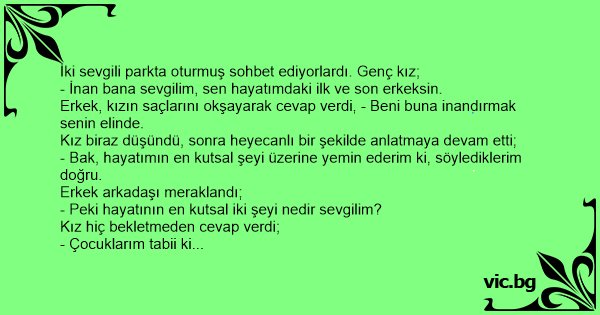 İki sevgili parkta oturmuş sohbet ediyorlardı. Genç kız;