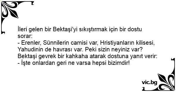 İleri gelen bir Bektaşi'yi sıkıştırmak için bir dostu sorar: