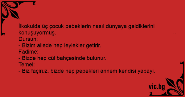 İlkokulda üç çocuk bebeklerin nasıl dünyaya geldiklerini konuşuyormuş.