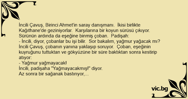 - Eee... Müneccim çoban, eşek kuyruğu da hava tahmin aracı olursa, elbet böyle olur padişahım!