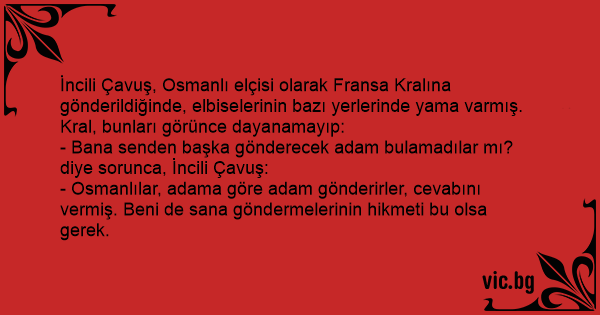 - Bana senden başka gönderecek adam bulamadılar mı? diye sorunca, İncili Çavuş: