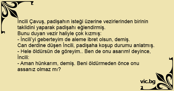 İncili Çavuş, padişahın isteği üzerine vezirlerinden birinin taklidini yaparak padişahı eğlendirmiş.