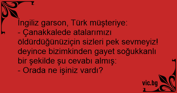 - Çanakkalede atalarımızı öldürdüğünüziçin sizleri pek sevmeyiz! deyince bizimkinden gayet soğukkanlı bir şekilde şu cevabı almış: