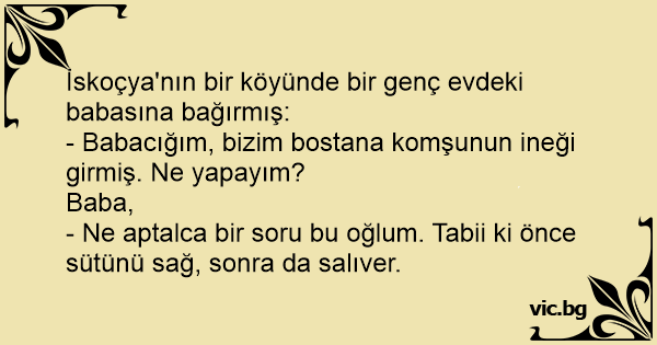- Babacığım, bizim bostana komşunun ineği girmiş. Ne yapayım?