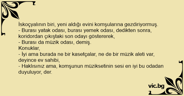 - İyi ama burada ne bir kasetçalar, ne de bir müzik aleti var, deyince ev sahibi,