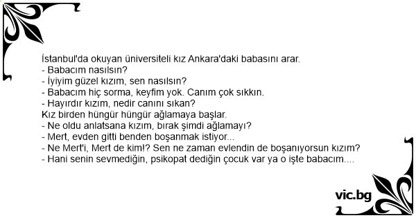 Kız gülerek – Baba bunların hepsi bi şakaydı sadece bu sene sınıfta kaldım onu demek için aramıştım.