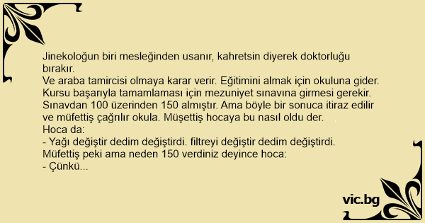 Jinekoloğun biri mesleğinden usanır, kahretsin diyerek doktorluğu bırakır.