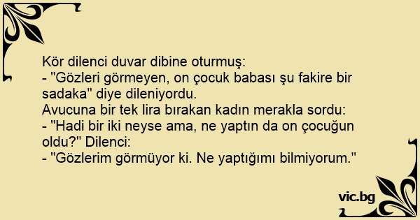 - "Hadi bir iki neyse ama, ne yaptın da on çocuğun oldu?" Dilenci: