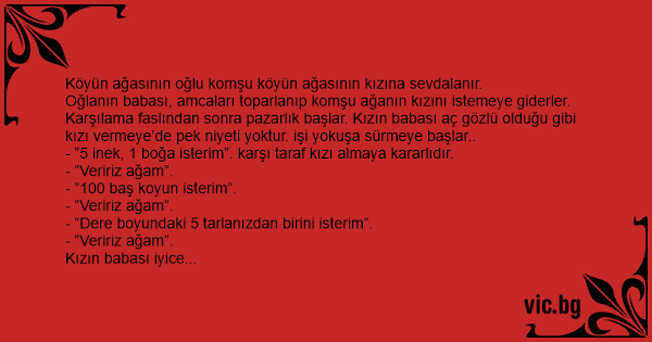 - ”5 inek, 1 boğa isterim”. karşı taraf kızı almaya kararlıdır.