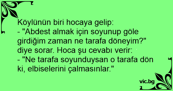 - "Abdest almak için soyunup göle girdiğim zaman ne tarafa döneyim?" diye sorar. Hoca şu cevabı verir: