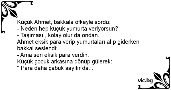 Ahmet eksik para verip yumurtaları alıp giderken bakkal seslendi:
