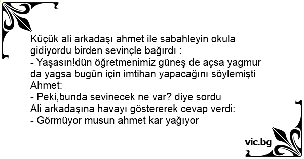 Küçük ali arkadaşı ahmet ile sabahleyin okula gidiyordu birden sevinçle bağırdı :