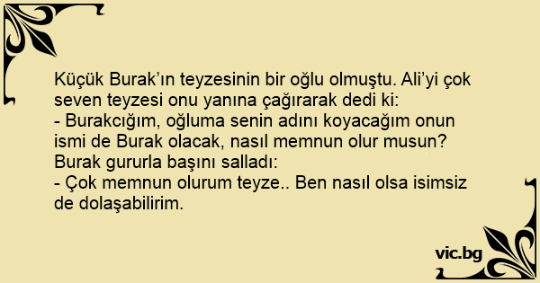 - Burakcığım, oğluma senin adını koyacağım onun ismi de Burak olacak, nasıl memnun olur musun?