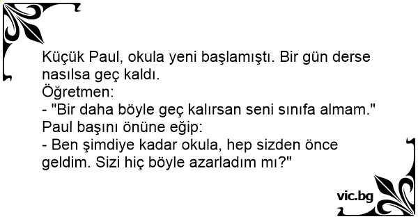 Küçük Paul, okula yeni başlamıştı. Bir gün derse nasılsa geç kaldı.