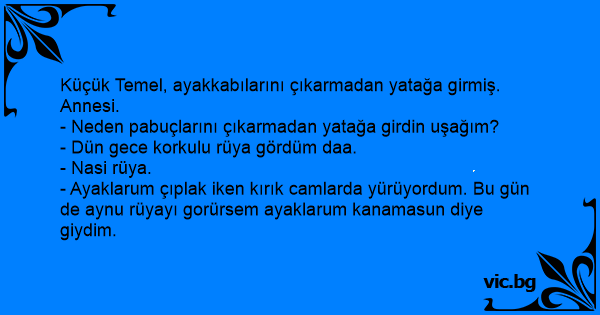 - Neden pabuçlarını çıkarmadan yatağa girdin uşağım?