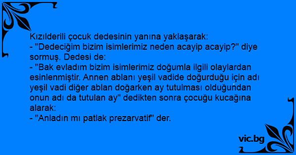 - "Dedeciğim bizim isimlerimiz neden acayip acayip?" diye sormuş. Dedesi de:
