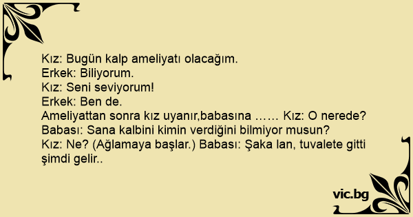 Kız: Ne? (Ağlamaya başlar.) Babası: Şaka lan, tuvalete gitti şimdi gelir..