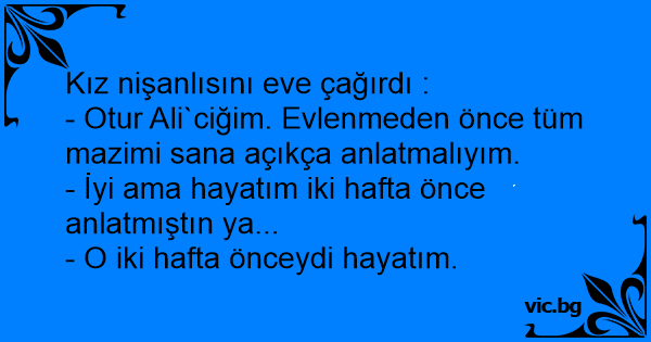 - Otur Ali`ciğim. Evlenmeden önce tüm mazimi sana açıkça anlatmalıyım.