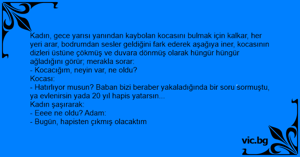 - Hatırlıyor musun? Baban bizi beraber yakaladığında bir soru sormuştu, ya evlenirsin yada 20 yıl hapis yatarsın...