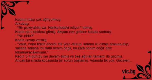 Kadın 3-4 gün bu işe devam etmiş ve baş ağrıları tamamı ile geçmiş.