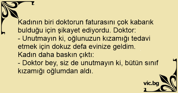 - Doktor bey, siz de unutmayın ki, bütün sınıf kızamığı oğlumdan aldı.