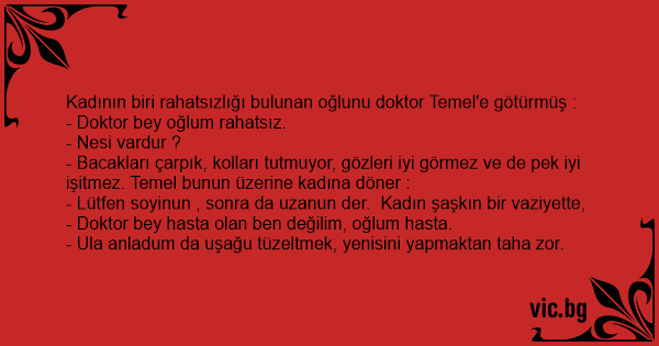 - Lütfen soyinun , sonra da uzanun der. Kadın şaşkın bir vaziyette, - Doktor bey hasta olan ben değilim, oğlum hasta.
