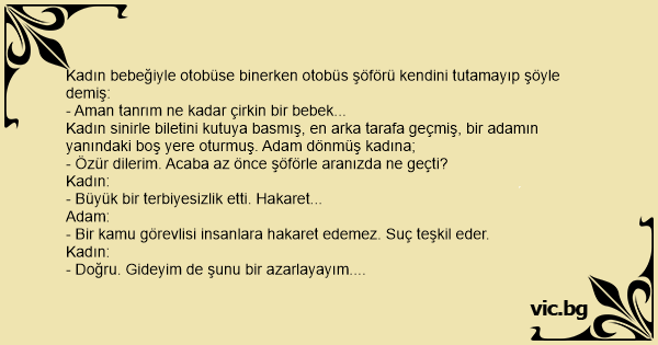 Το πιο άσχημο μωρό The baby Το άσχημο μωρό Една жена се качила в автобус с бебето си. Шофьорът казал: В автобусе едет женщина с ребёнком.Заходит пьяный мужик: A woman gets on a bus with her baby. The bus driver says, "That's the ugliest baby that I've ever seen. Ugh!" Uma mulher entra no ônibus com seu filho e o motorista se espanta:,- Nossa, é o bebê mais feio que já vi!,A mulher ouve calada e senta na parte de trás do ônibus. Bufando, desabafa para outro passageiro:,- O motorista me insultou!,E o passageiro recomenda:,- Vá lá... I was walking home last night when I noticed an old drunk staggering along the road. He passed a woman who was walking a young child. "Lady", said the drunk, "that's the ugliest kid I've ever seen. Damn, that is one ugly child!." As the drunk wandered off, the lady burst into tears. Just then,... Wchodzi kobieta z czarnym dzieckiem na rękach do autobusu. - Fuj, jakie brzydkie dziecko - mówi kierowca autobusu. Kobieta oburzona, ba, wpieniona na maksa siada obok innego pasażera i mówi: - Słyszał pan? Jak tak można. Jaki niekulturalny, jaka... Kommt eine Frau mit ihrem Kind auf dem Arm in den Bus. Sagt der Busfahrer: "Mensch sie haben aber ein häßliches Kind!" Schockiert und immer noch verärgert setzt sich die Frau in den Bus. Ihr... På en buss i London satt en ung kvinna med sin baby i famnen när en berusad man klev på och stannade framför henne. Mannen tittade en lång stund på barnet och sa sedan så högt att alla i bussen... Met haar baby van zes dagen op de arm stapt Annie de bus in. "Dat is de lelijkste baby die ik ooit heb gezien!" zei de chauffeur, waarop Annie woedend achter in de bus plaatsneemt. De man naast... Annie stapt de bus in met haar pasgeboren baby op haar arm. Zegt de buschauffeur: 'Tering! Zo'n lelijk kind heb ik nog nooit gezien!' Annie wordt boos en gaat helemaal achterin de bus zitten. Een... En dame går på en buss med babyen sin. Bussjåføren sier: - Det er den styggeste babyen jeg noen gang har sett. Æsj!. Dama finner seg et sete og setter seg ned, mens hun furter. Hun snur seg til... O femeie cu un copil in brate se urca in autobuz. Soferul Zice: - Aoleu, asta e cel mai urit copil pe care l-am vazut Vreodata. Femeia Se duce in spatele autobuzului si se asaza pe scaun, Spumegind... Een vrouw staat samen met haar baby op de arm te wachten bij een bushalte. Als de bus aan komt en de vrouw instapt zegt de buschauffeur: "Dat is de lelijkste baby die ik ooit heb gezien!" De vrouw... En dame går på bussen med babyen sin, da bussjåføren utbryter: - «Det er den styggeste babyen jeg noen gang har sett. Æsj!» Damen går bak i bussen, setter seg ned og er rasende. «Sjåføren fornærmet... A woman got on a bus holding a baby. The bus driver looked at the child and blurted out, "That's the ugliest baby I've ever seen!" Infuriated, the woman slammed her fare into the fare box and took... A lady boards the bus with her baby. The bus driver looks at the baby and says "that's the ugliest thing I've ever seen!" The lady finds a seat and she is mad as hell. She tells the guy in the seat... A woman walks onto the Bus with his child. The driver says, "That’s the ugliest child I have seen!" The woman sits down and tells her neighbor. The neighbor replies, “Go say something back. Here,... Uma Senhora estava sentada com o seu filhinho no colo, na poltrona do ônibus, quando chegou um cavalheiro e sentou ao lado dela, quando ele olhou para a criança, ficou espantado e falou: "Virgem... En kvinde kommer ind i en bus med en baby på armen... Chaufføren kigger længe på ungen og udbryder: "Hold da kæft en grim unge" Kvinden sætter sig bagest i bussen, mens hun er ved at koge over af... Moteris su mažu vaiku įlipa į mikroautobusą. Vairuotojas imdamas pinigus, dėbteli į vaiką: - Nieko sau! Tokios baidyklės dar nematęs! Keleivė skubiai pereina į mikroautobuso galą ir susinervinus...