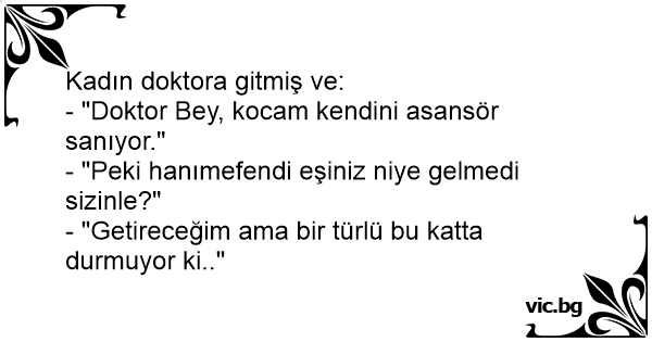 - "Doktor Bey, kocam kendini asansör sanıyor."