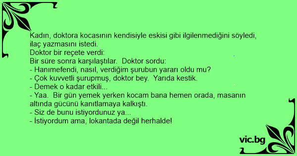 Kadın, doktora kocasının kendisiyle eskisi gibi ilgilenmediğini söyledi, ilaç yazmasını istedi.