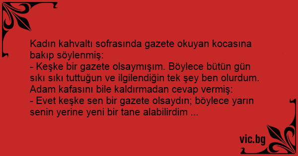 - Evet keşke sen bir gazete olsaydın; böylece yarın senin yerine yeni bir tane alabilirdim ...