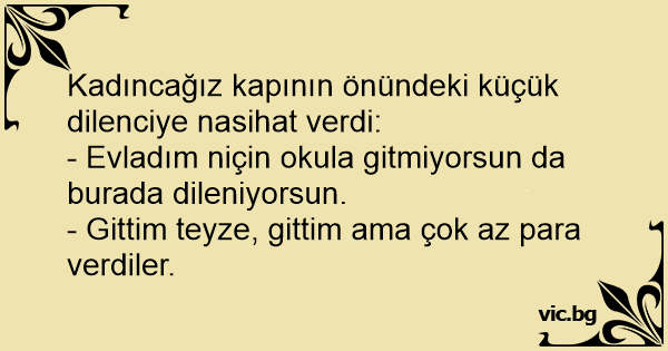 - Evladım niçin okula gitmiyorsun da burada dileniyorsun.