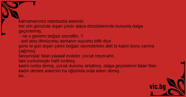 bu sırada kapı çalmış kadın telaşlı ...çabuk giт haftaya aynı yerde buluşalım kızım geldi demiş.