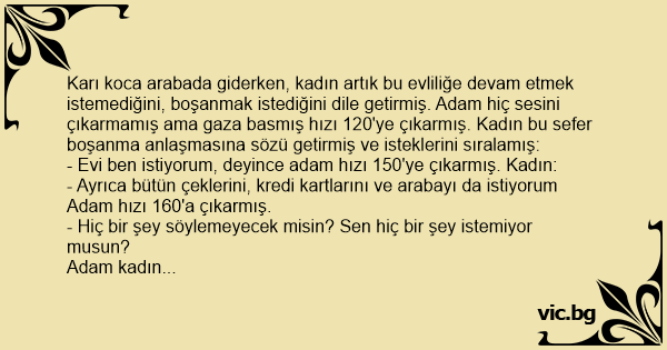 - Evi ben istiyorum, deyince adam hızı 150'ye çıkarmış. Kadın:
