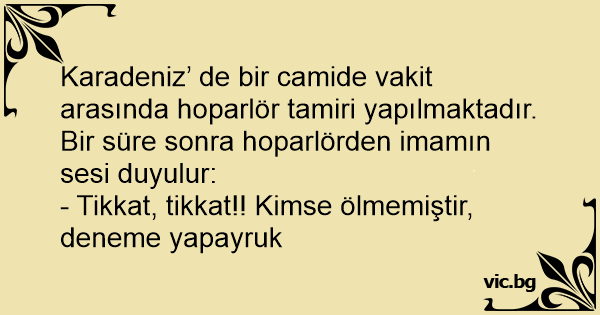 Karadeniz’ de bir camide vakit arasında hoparlör tamiri yapılmaktadır. Bir süre sonra hoparlörden imamın sesi duyulur: