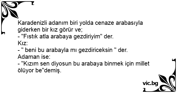 Karadenizli adanım biri yolda cenaze arabasıyla giderken bir kız görür ve;