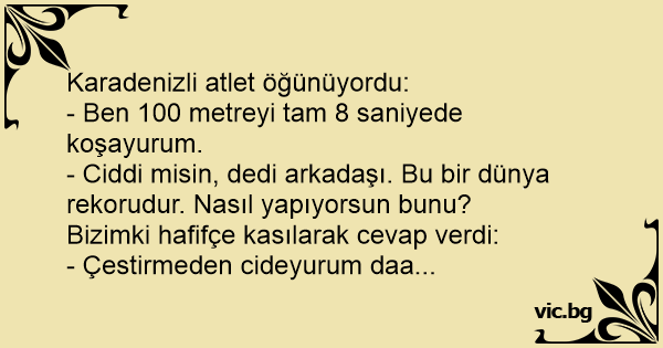 - Ben 100 metreyi tam 8 saniyede koşayurum.