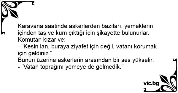 - "Kesin lan, buraya ziyafet için değil, vatanı korumak için geldiniz."