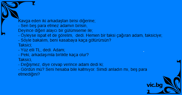 - Öyleyse ispat et de görelim, dedi. Hemen bir taksi çağıran adam, taksiciye;