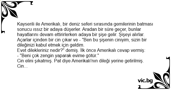 Evet dilekleriniz nedir?" demiş. İlk önce Amerikalı cevap vermiş: