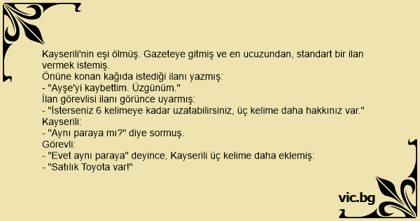 Kayserili'nin eşi ölmüş. Gazeteye gitmiş ve en ucuzundan, standart bir ilan vermek istemiş.