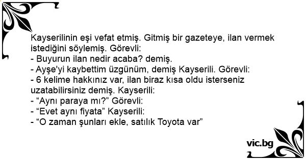 - 6 kelime hakkınız var, ilan biraz kısa oldu isterseniz uzatabilirsiniz demiş. Kayserili: