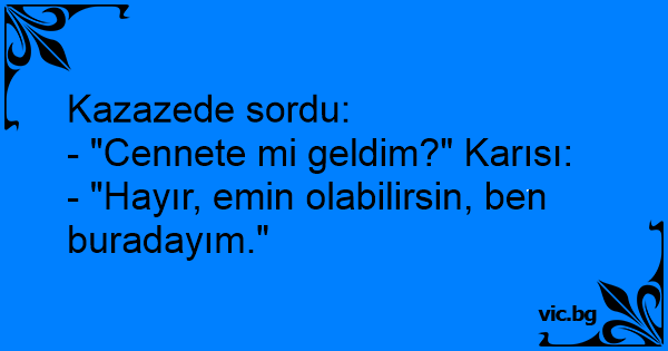 - "Cennete mi geldim?" Karısı: