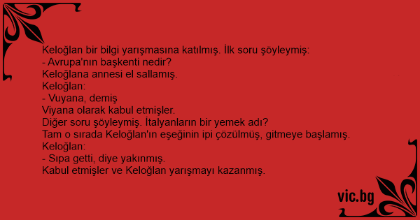 Keloğlan bir bilgi yarışmasına katılmış. İlk soru şöyleymiş:
